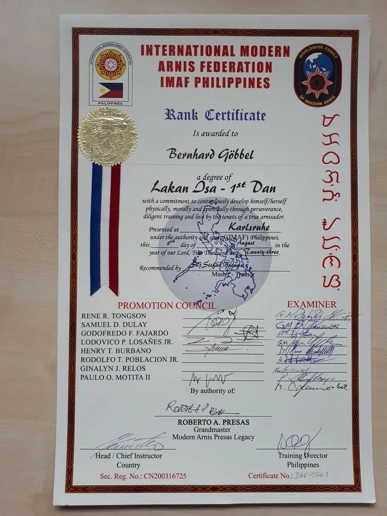 Du hast schon Erfahrung im Modern Arnis, Kali oder Escrima.
